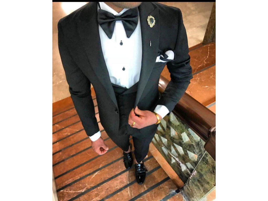 Komplet : sako, nohavice, vesta, motýlik a vreckovka